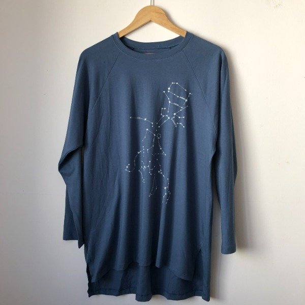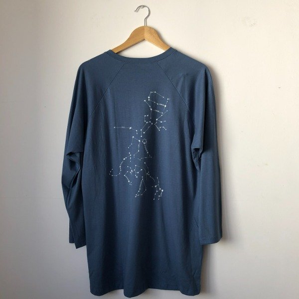 Cada una de nuestras prendas son únicas, estampadas a mano con tintas al agua en nuestra tienda taller. Son prendas amplias que priorizan la comodidad y la optimización de las telas, evitando descartes textiles innecesarios.