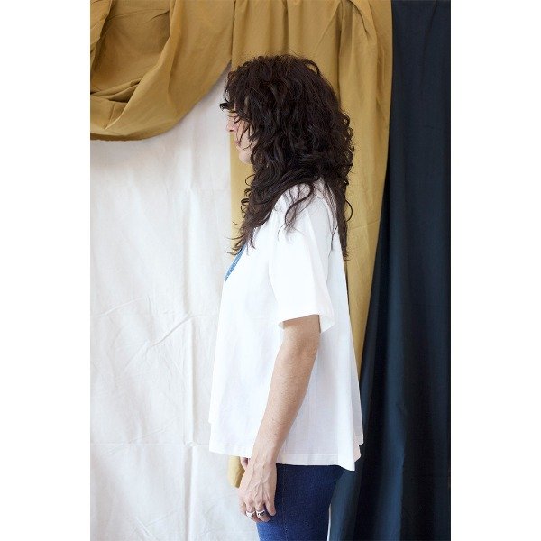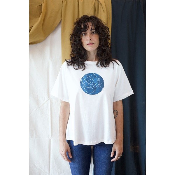 Cada una de nuestras prendas son únicas, estampadas a mano con tintas al agua en nuestra tienda taller. Son prendas amplias que priorizan la comodidad y la optimización de las telas, evitando descartes textiles innecesarios.
