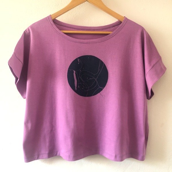 Cada una de nuestras prendas son únicas, estampadas a mano con tintas al agua en nuestra tienda taller. Son prendas amplias que priorizan la comodidad y la optimización de las telas, evitando descartes textiles innecesarios.