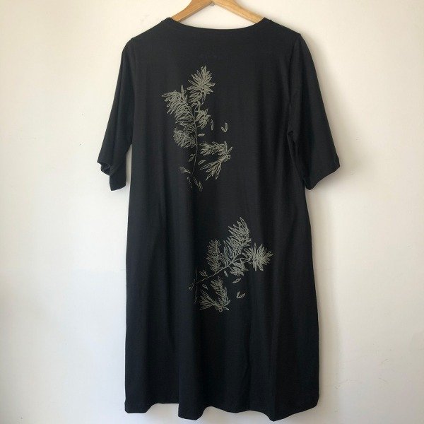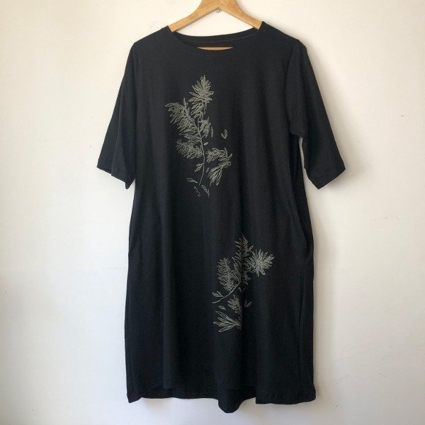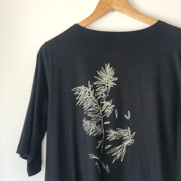 Cada una de nuestras prendas son únicas, estampadas a mano con tintas al agua en nuestra tienda taller. Son prendas amplias que priorizan la comodidad y la optimización de las telas, evitando descartes textiles innecesarios.