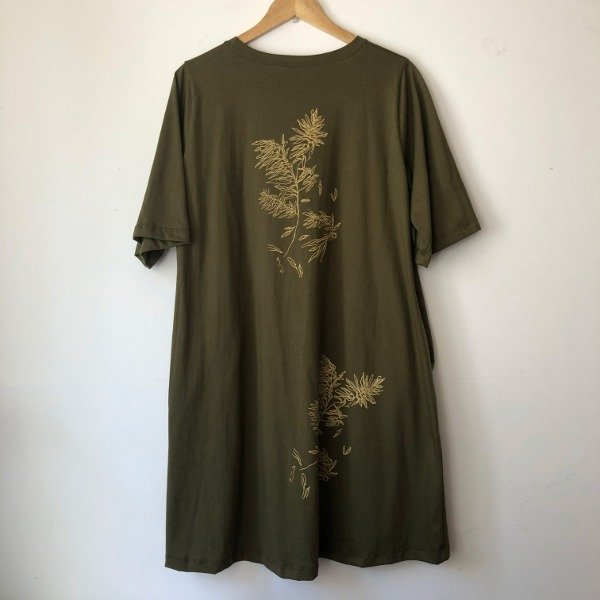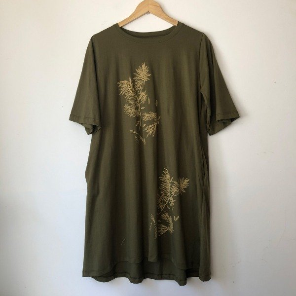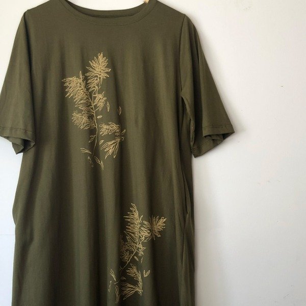Cada una de nuestras prendas son únicas, estampadas a mano con tintas al agua en nuestra tienda taller. Son prendas amplias que priorizan la comodidad y la optimización de las telas, evitando descartes textiles innecesarios.