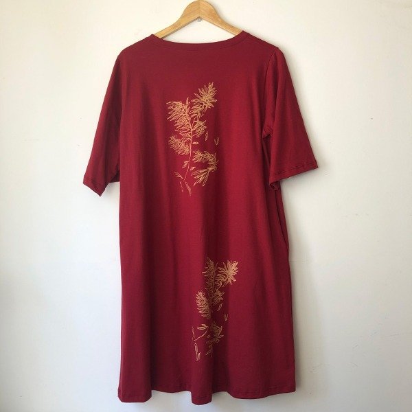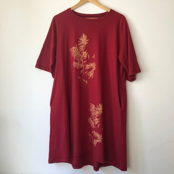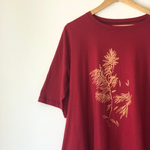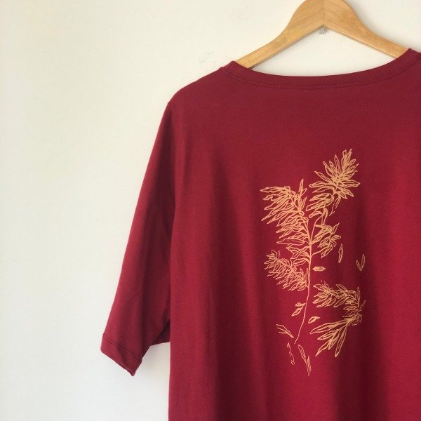 Cada una de nuestras prendas son únicas, estampadas a mano con tintas al agua en nuestra tienda taller. Son prendas amplias que priorizan la comodidad y la optimización de las telas, evitando descartes textiles innecesarios.
